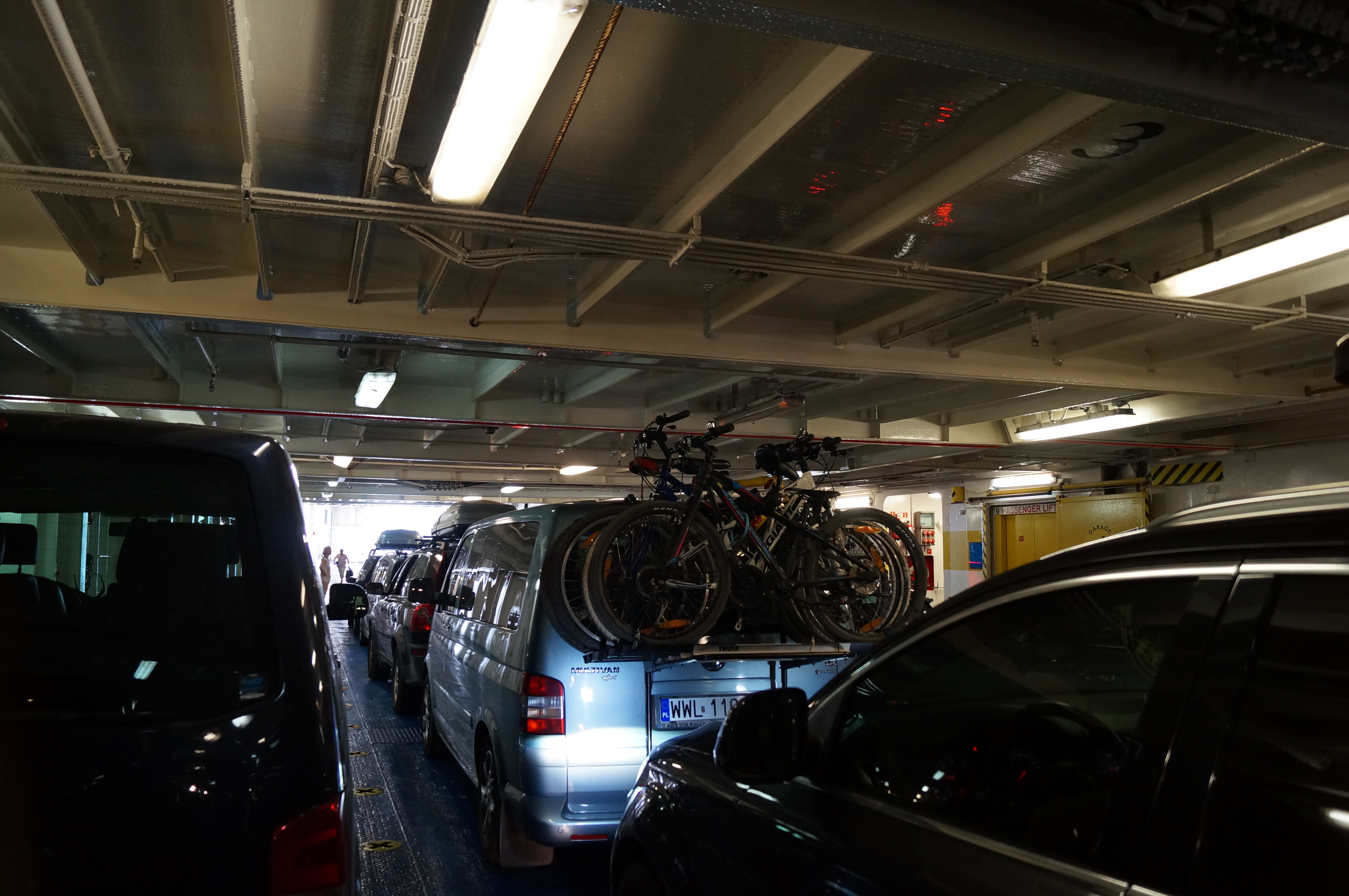 Die Fahrt mit der Fähre war dann auch keine Herausforderung, warum auch. Der Landy zählt ja als Grossfahrzeug und darf mit Seinesgleichen und den wirklich grossen Brocken auf ein Parkdeck. Das war auch ein anderes Einfahren, denn mit dem S Max, der etwas länger und breiter war und den ähnlichen Wendekreis (beide liegen bei rund 12 Metern) wie der Landy hat, war das normale Parkdeck eher eine elendige Kurverei. Nach vorne und hinten war der Platz zwar auch begrenzt, aber hey, die Parkeinweiser wissen, was sie tun.
