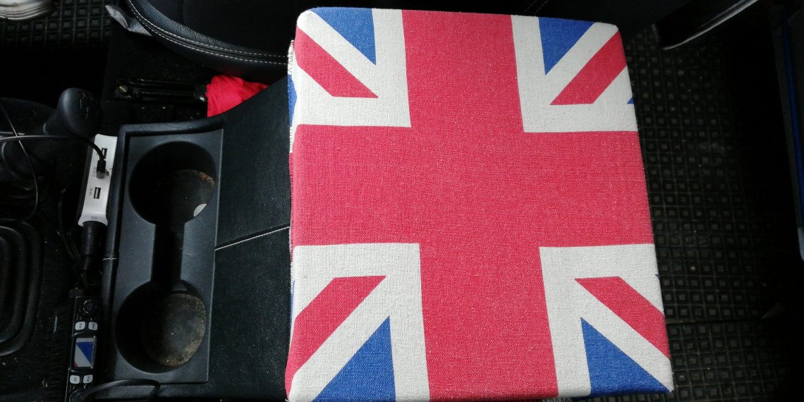 Also. Variante 2 wurde es, nur Marke Eigenbau. Kopfkissenbezug mit Union Jack kaufen, Schaumstoff zuschneiden lassen, Mama bitten, das zu nahen und mit Klett verbauen. Fertig.