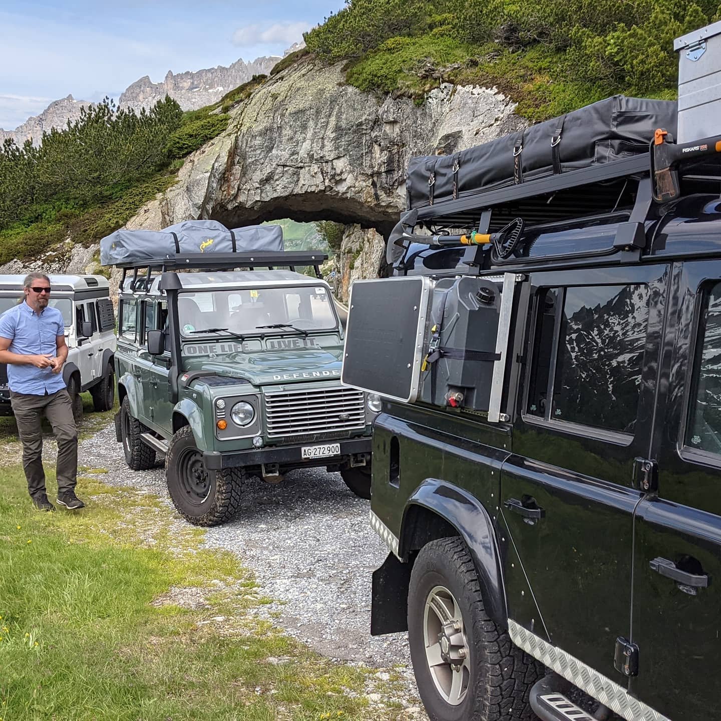 Ein wunderschönes Wochenende mit Sonne, Lagerfeuer und Chäsbrätel lag hinter uns. Vor uns der Sustenpass. Und damit schnelle Autos, Velofahrer und Motorräder. Und mitten drin wir mit den Defendern. Konflikte sind da vorprogrammiert.