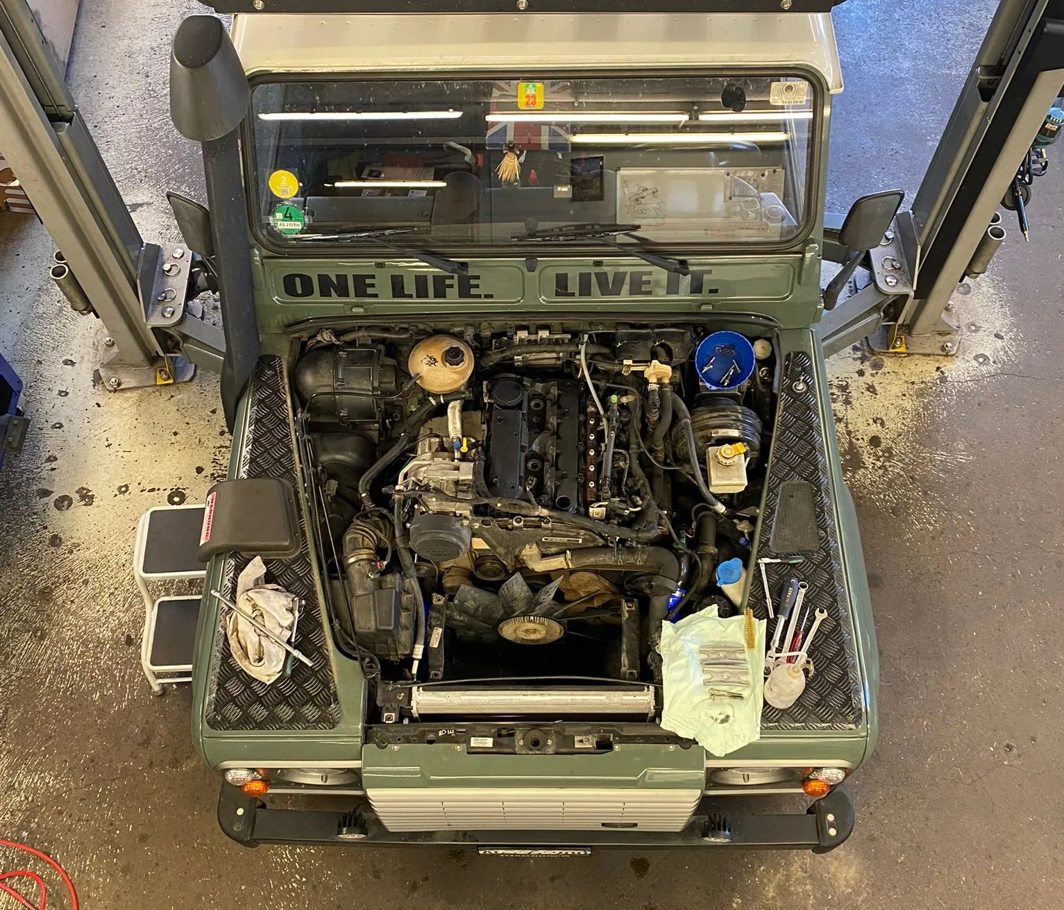 Denn beim Fahren ist mir nichts aufgefallen. Kein Röcheln oder „Klonk“, nur das permanent übliche Bauchgefühl, das wir alle bei den Land Rovern kennen. Meine Fahrt zur Inspektion war also nur Formsache, dass der lecke Kühler getauscht werden musste, war auch bekannt. Lucy ist ja nun auch schon bald zehn Jahre alt.