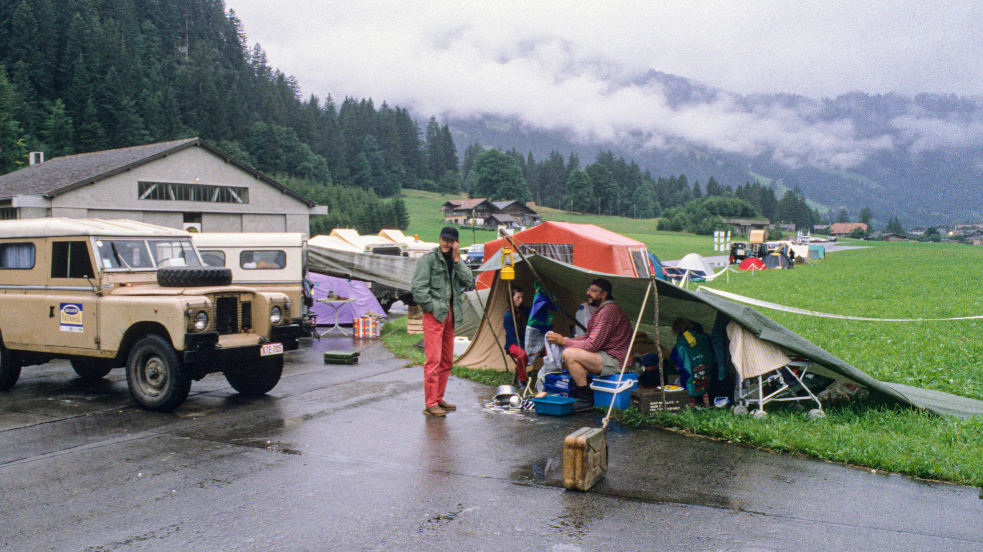 10-jähriges Jubiläum des Clubs – Unter einer einfachen Zeltblache lagert die Familie auf dem Flugplatz von St. Stephan und trotzt Wind und Wetter. Die Campingutensilien liegen zusammengeräumt auf wenig Platz im halbtrockenen Bereich unter der Blache. Heute ist die Technik weiter. Heute bestaunen wir die elektrisch ausfahrbaren Dachzelte, wasserdichten Hubdächer oder Innenausbauten, die so mancher teurer Zürcher Wohnung gut stünde.
